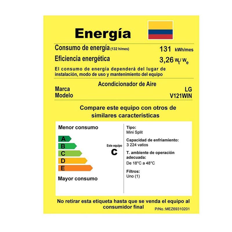 Aire Acondicionado Lg Invert 11000BTU 115v Dual V121WIN