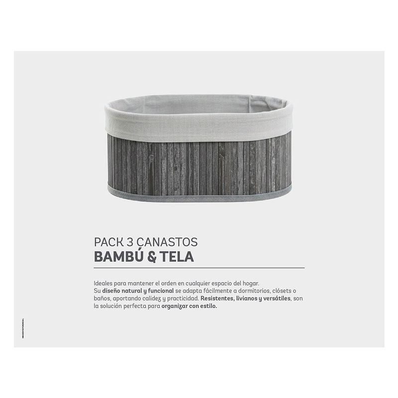 Canasto organizador Oval gris 3 piezas Cotidiana