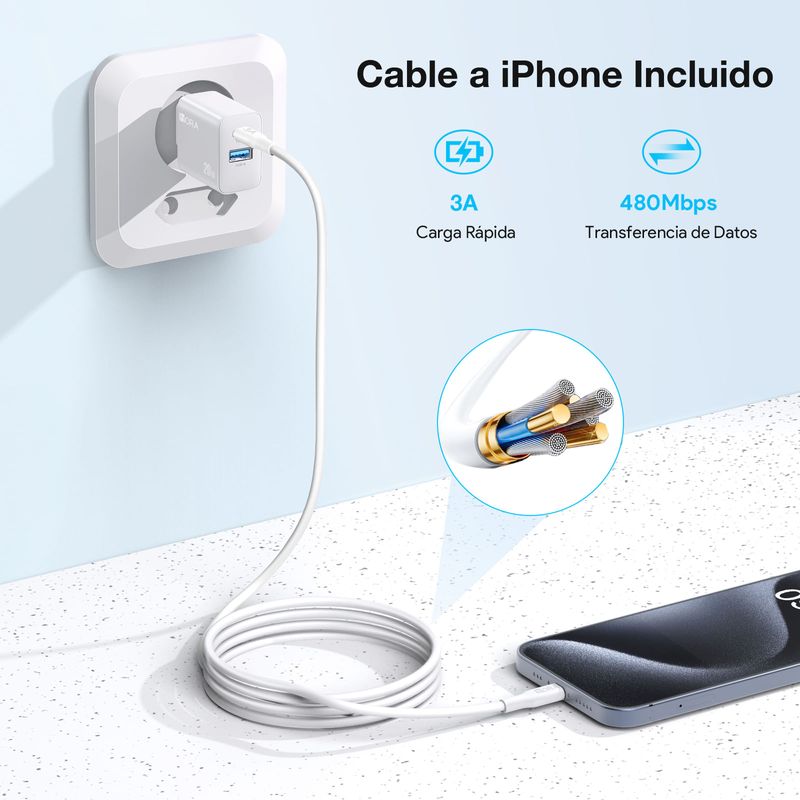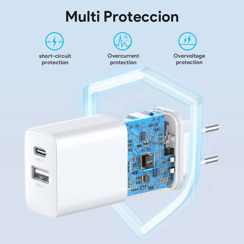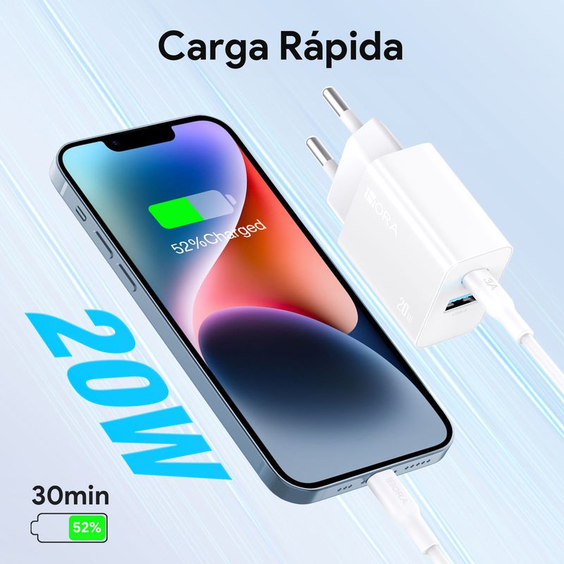 Cargador Rápido 20W 1Hora Doble Puerto (A+C) Gar163 Tipo C Blanco