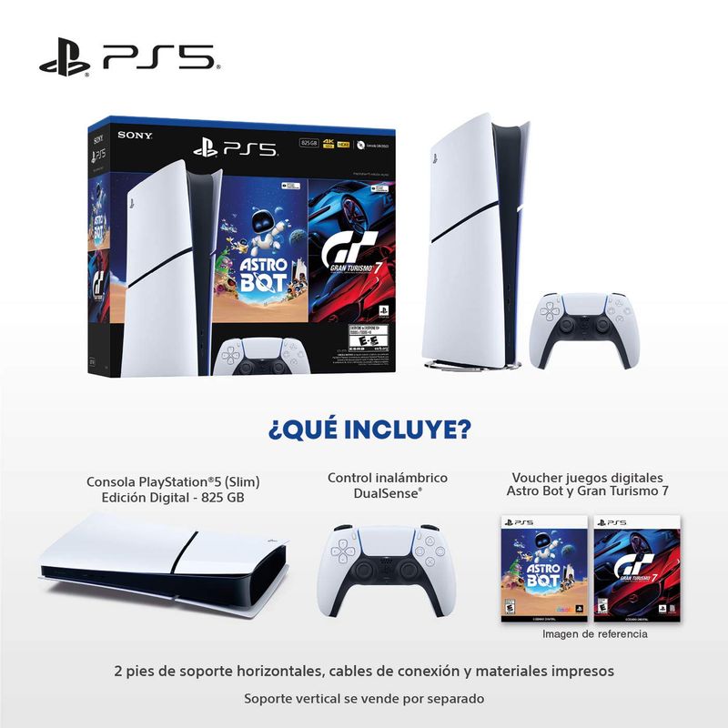 Consola Play Station 5 Digital + Juego Gran Turismo 7 (voucher) + Juego Astro Bot (voucher)